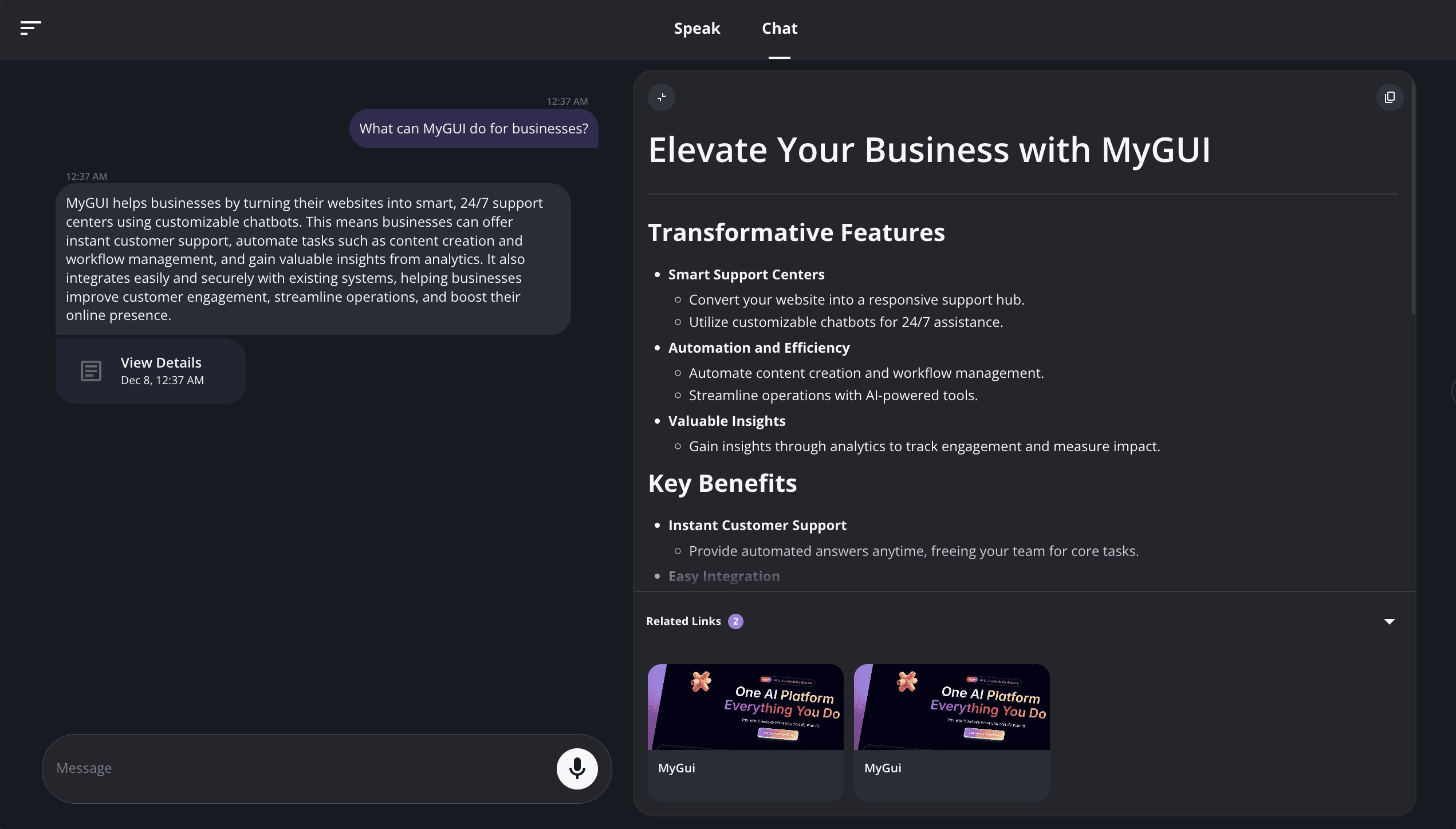 Harness the power of MyGUI to answer questions, guide customers, and keep your business connected all from one simple widget.